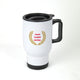Keep your drink hot with an official Manx Thermal Flask. Our flask comes with a push button lid to stop spillages and a stainless steel lid which doubles as a cup.