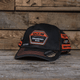 The Wings Cap, features The Black Dub spark plug design, on the front of the cap in a standout Blue & Grey. Fitted on a dark navy blue Cap with a grey mesh. The front design takes inspiration from vintage Petrol Station designs used in the 60’s & 70’s. A homage to the history of The Black Dub, Petrol Station & Garage.