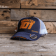 One of the standout features of this cap is the jagged sewing on the peak, a vintage technique rarely seen in modern designs. This rugged stitching adds a touch of authenticity and craftsmanship to the trucker-style cap, giving it a worn-in, classic feel that’s perfect for anyone who appreciates retro style with a modern twist. Whether you're at the TT races or just want to sport a piece of Manx history, this cap is a bold statement that celebrates The Black Dub's legacy.