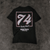 On the front, a smaller "74" detail sits proudly on the chest, offering a nod to the larger design on the back. The minimalist front ensures versatility, making this tee perfect for casual wear while still showcasing your support for one of the most exciting names in modern racing.